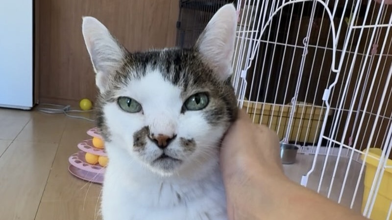 保護地 シェルター。悪質な遺棄により成猫3匹を受け入れ。 保護日 2025年6月11日。保護時推定年齢4-5歳。